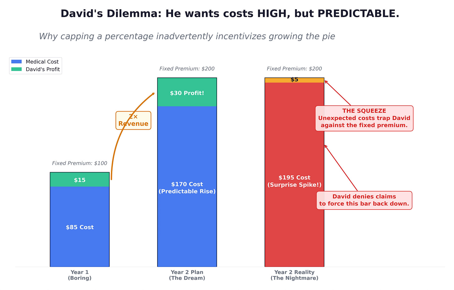 David sets his premium rates 12 to 18 months in advance. If the hospital raises its prices faster than that schedule, David’s margin for the current year vanishes. This transforms the “Denial” from a medical decision into an algorithmic financial throttle.